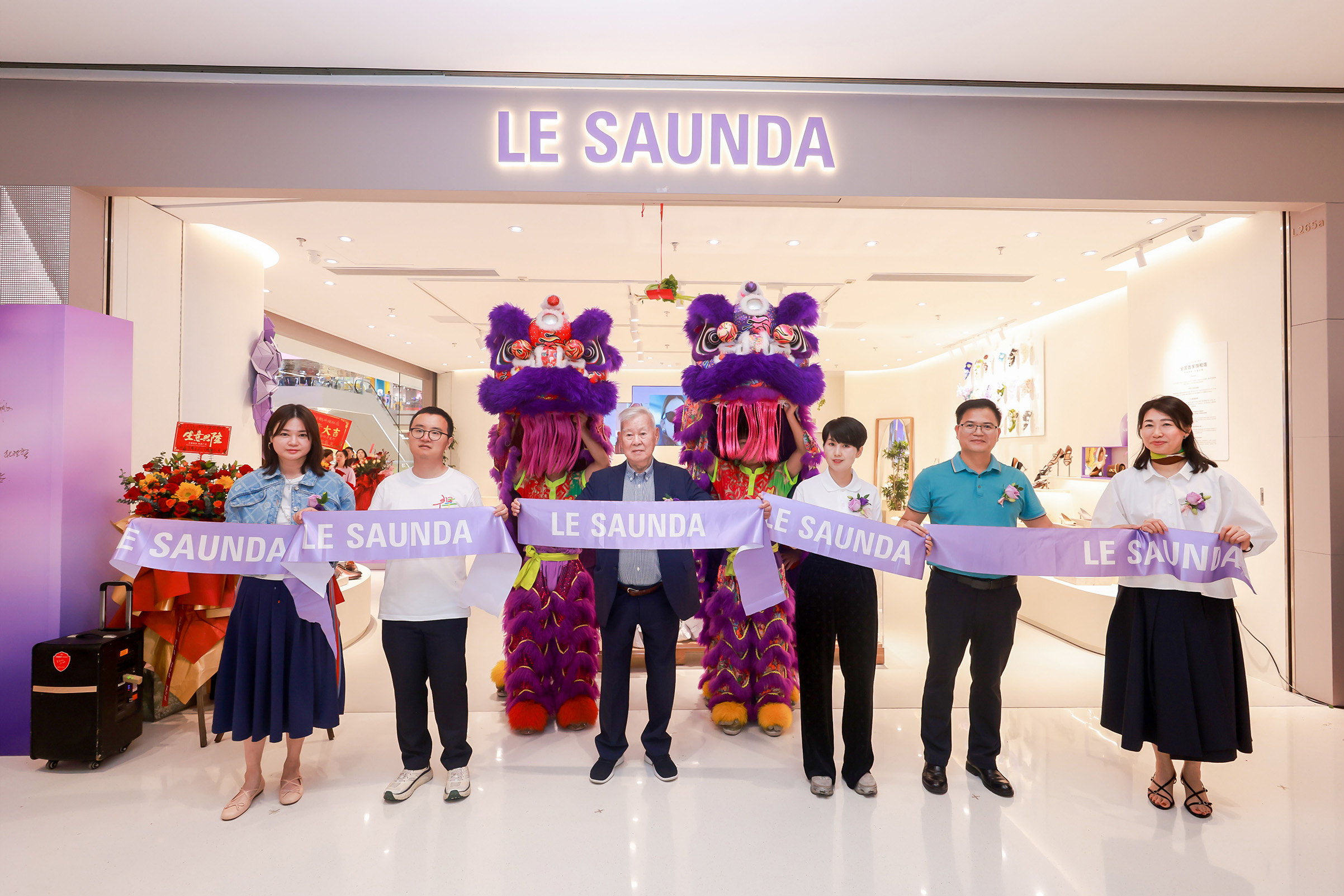 开业盛典以传统醒狮点睛仪式拉开帷幕,紫色潮狮采青环节巧妙呼应品牌"步履生风"的吉祥寓意。